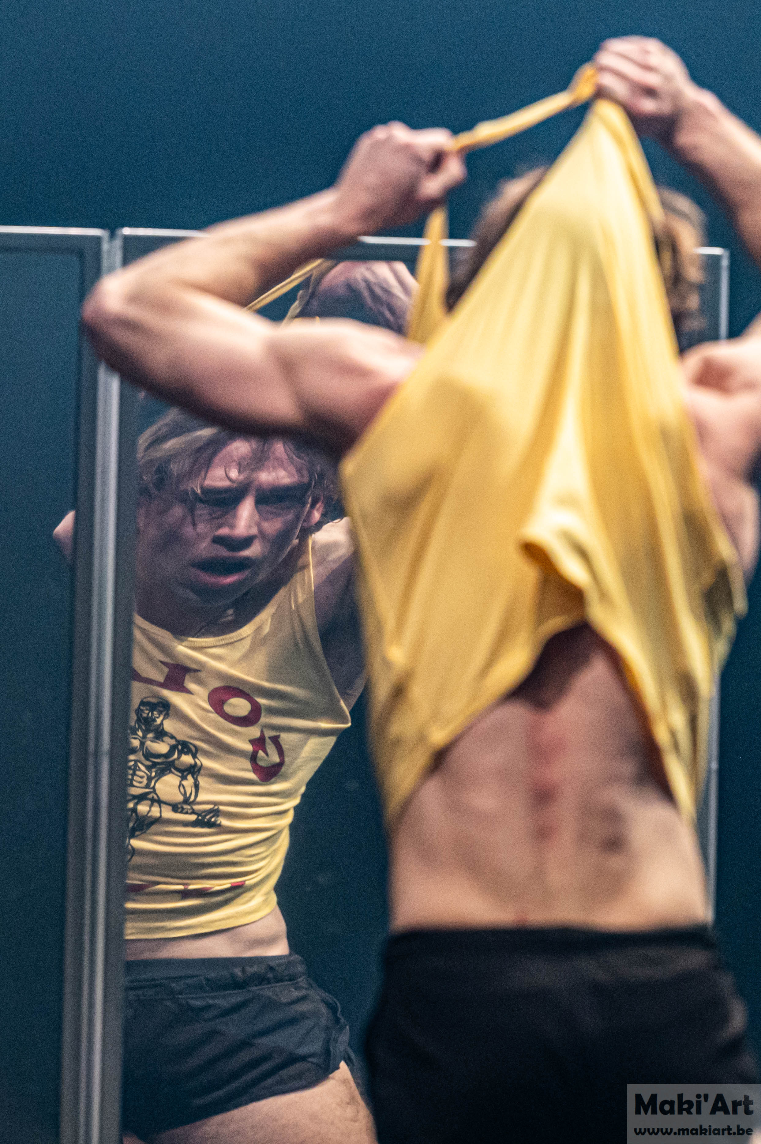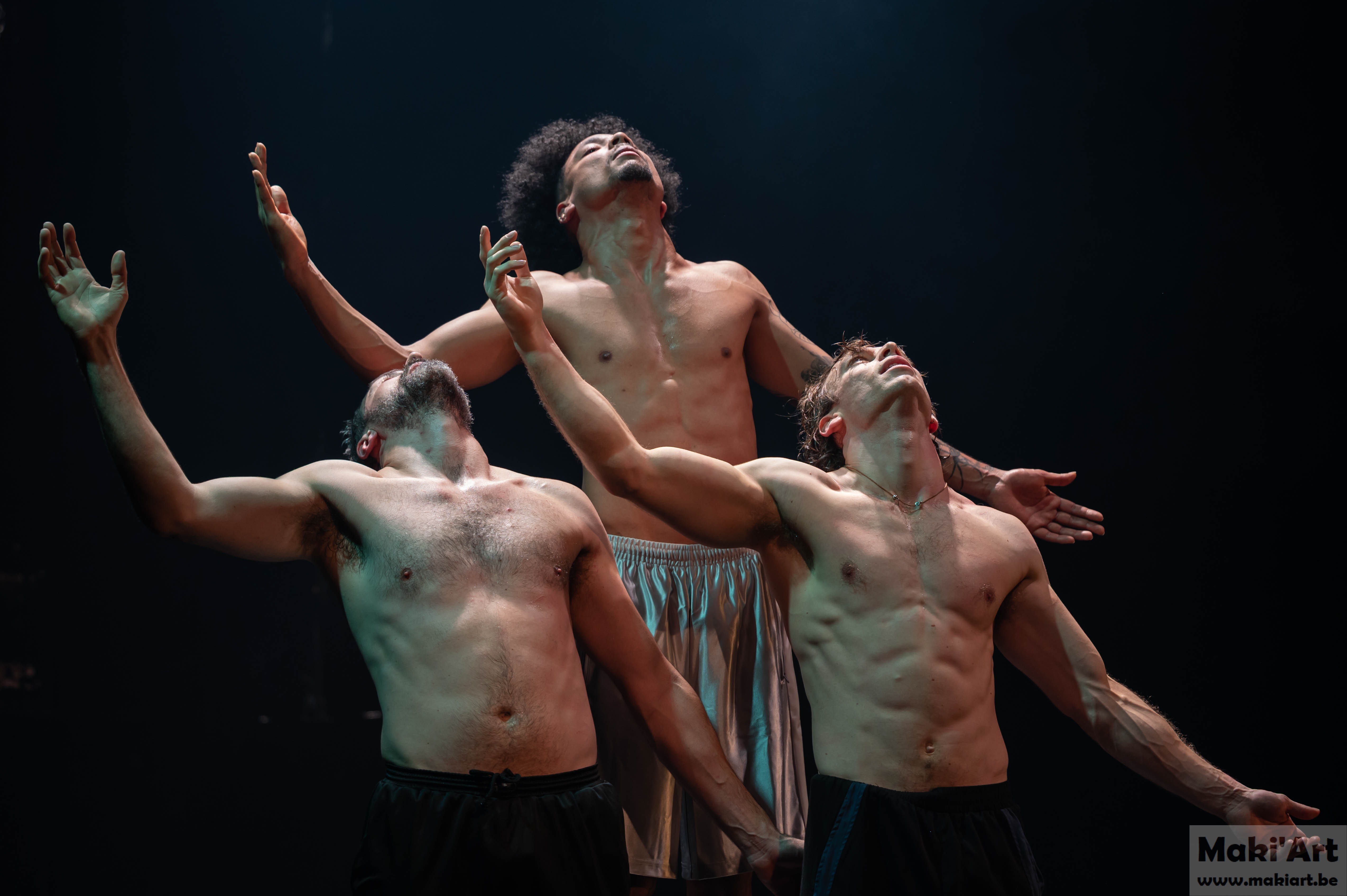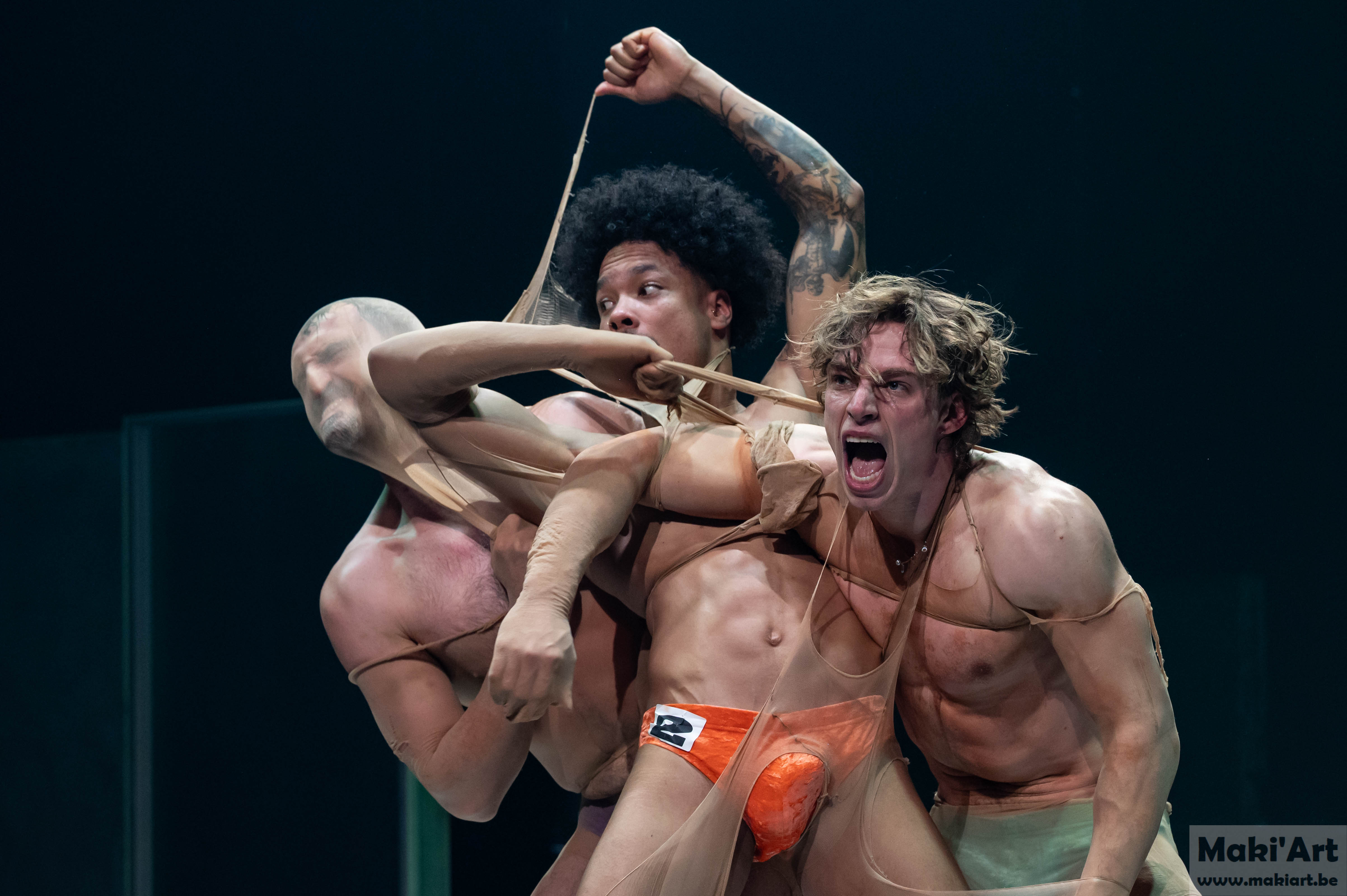 Boven: ‘Lijfbouwers’ van Jotka Bauwens. Met Jeffrey Jackson Loewenicht, Elias Vandenbroucke, Patrick Vervueren