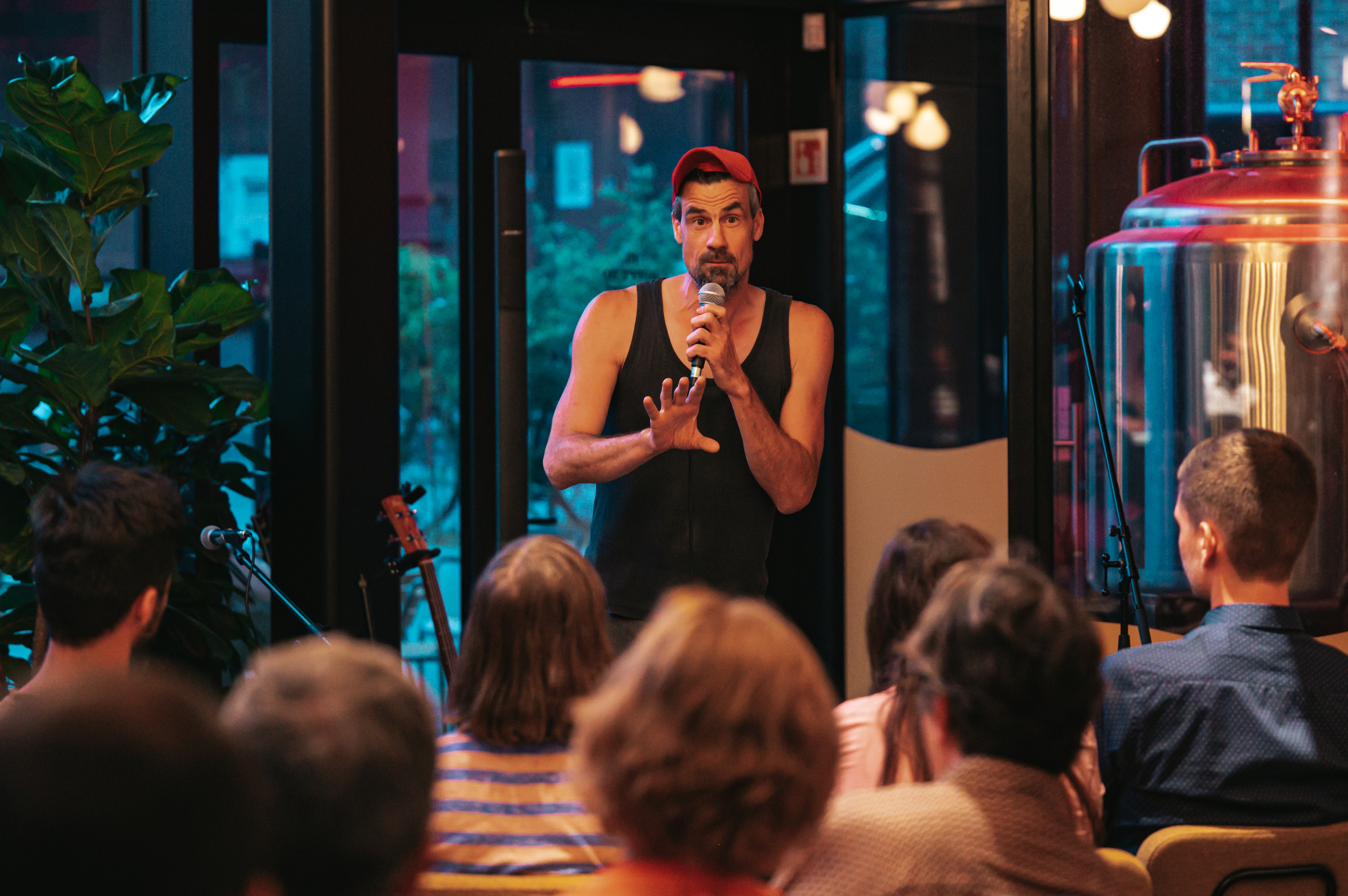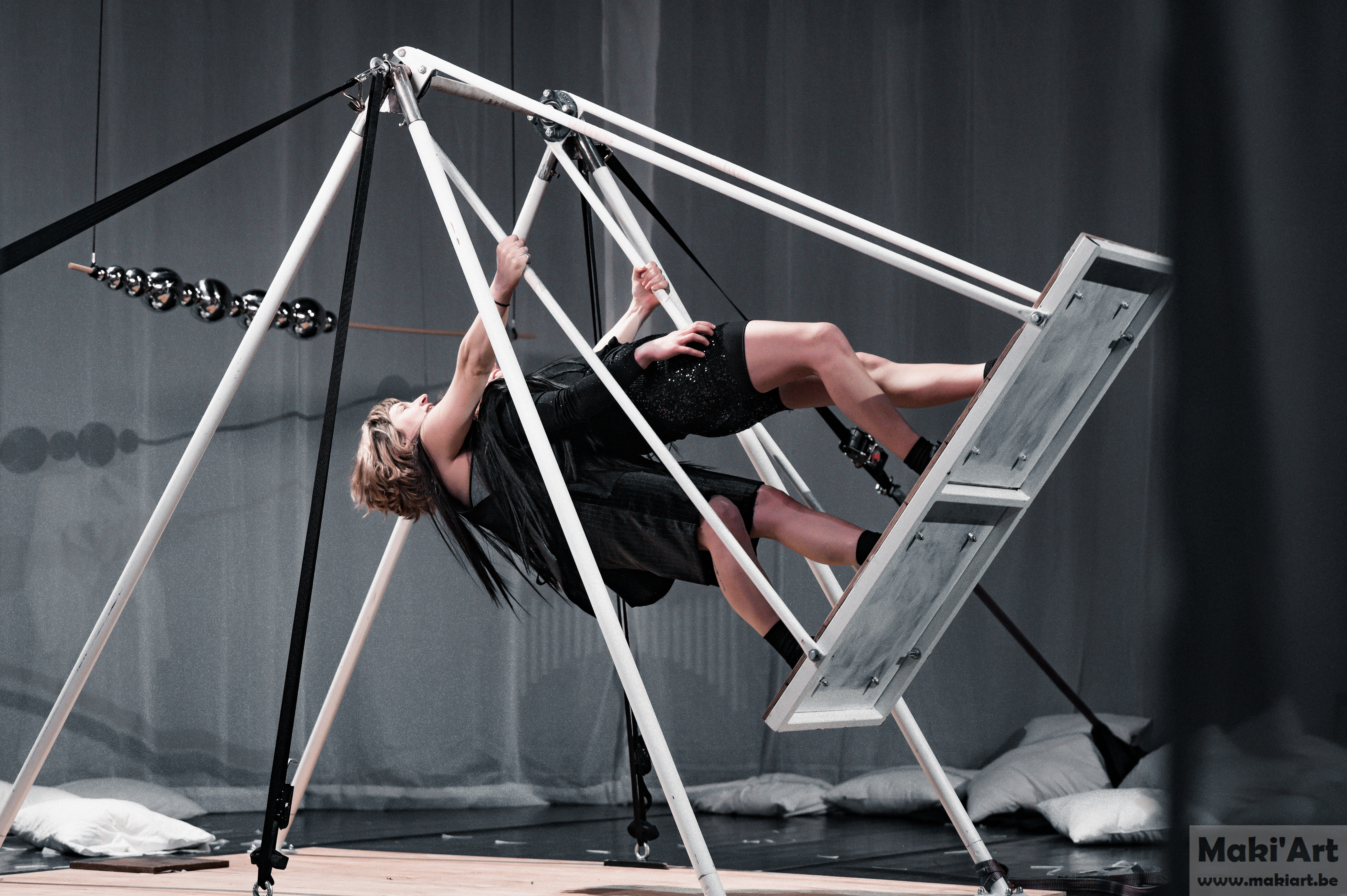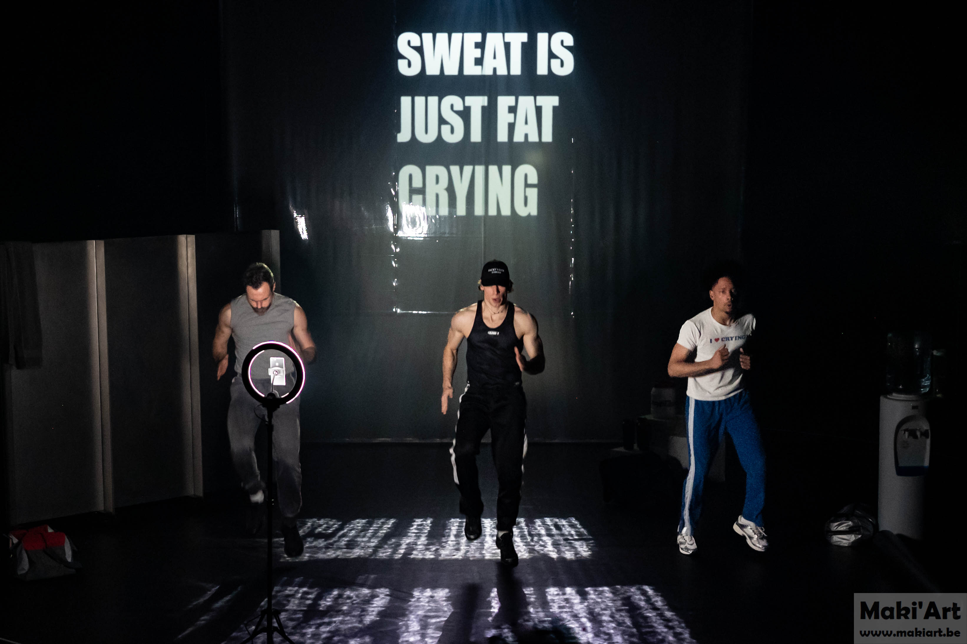 Boven: ‘Lijfbouwers’ van Jotka Bauwens. Met Jeffrey Jackson Loewenicht, Elias Vandenbroucke, Patrick Vervueren