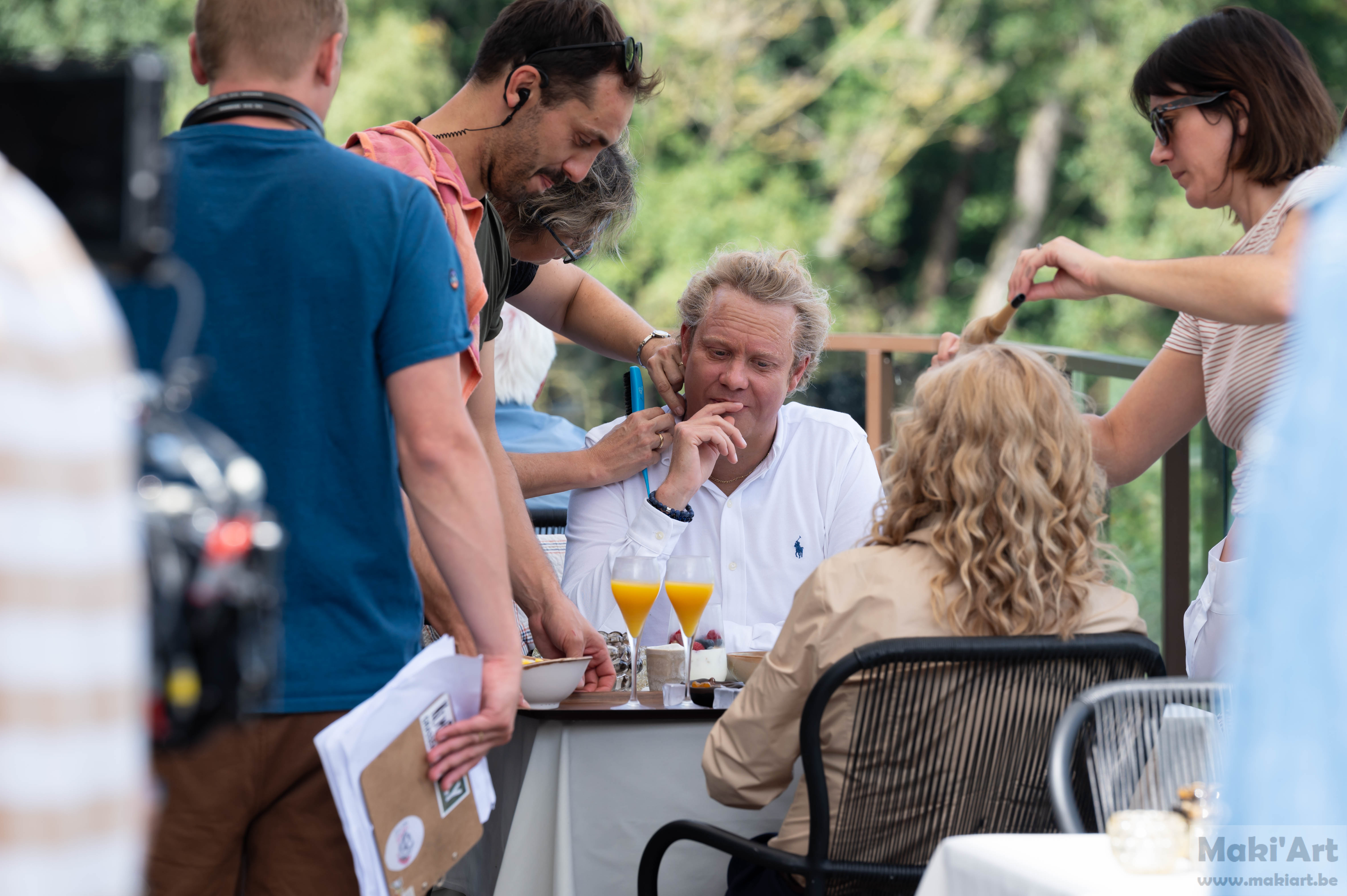 Op de set van ‘Nonkels’ met Emilie De Roo, Rik Verheye, Barbara Sarafian, Wim Opbrouck, Dorien Van Poucke,…